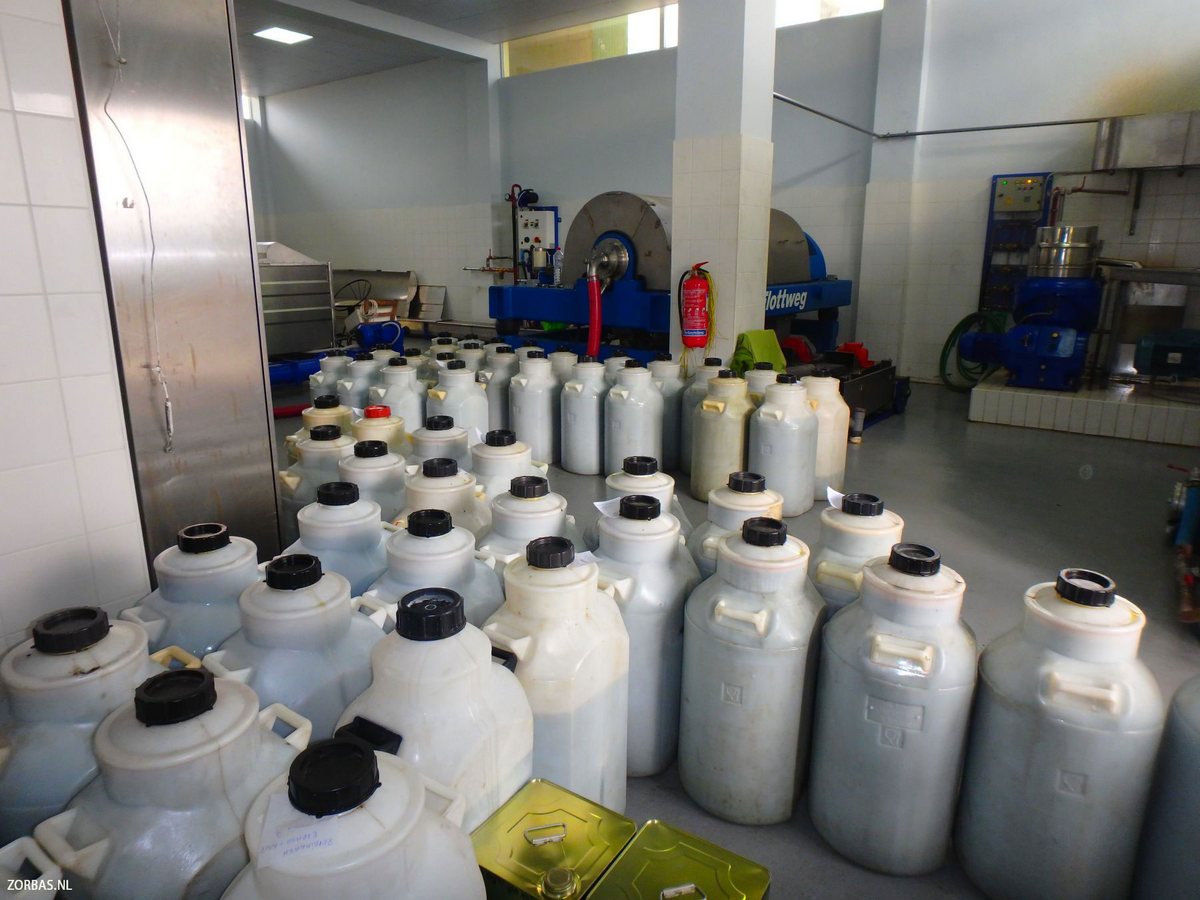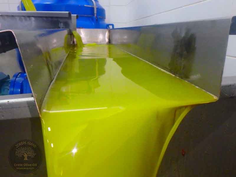 In de pers worden de olijven koud geperst. Daarna wordt de pure olijfolie, ook wel het goud van Kreta genoemd, gescheiden door een centrifuge. De olie stroomt in een grote container waar hij ook wordt gewogen. Nu komt het spannende moment om te zien hoeveel liter olijfolie de oogst heeft opgebracht. Maar nog veel belangrijker is het moment waarop de olie wordt getest op kwaliteit.