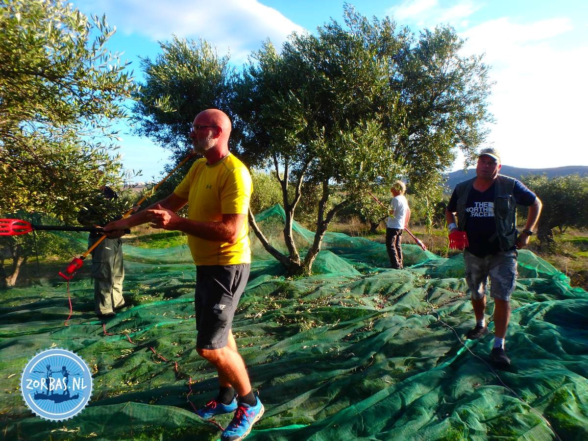 De olijvenoogst is een zeer arbeidsintensieve klus. De deelnemers moeten dus fysiek fit zijn. De netten worden vervolgens weer onder de volgende bomen geplaatst. En dit herhaalt zich tot alle bomen gedaan zijn.