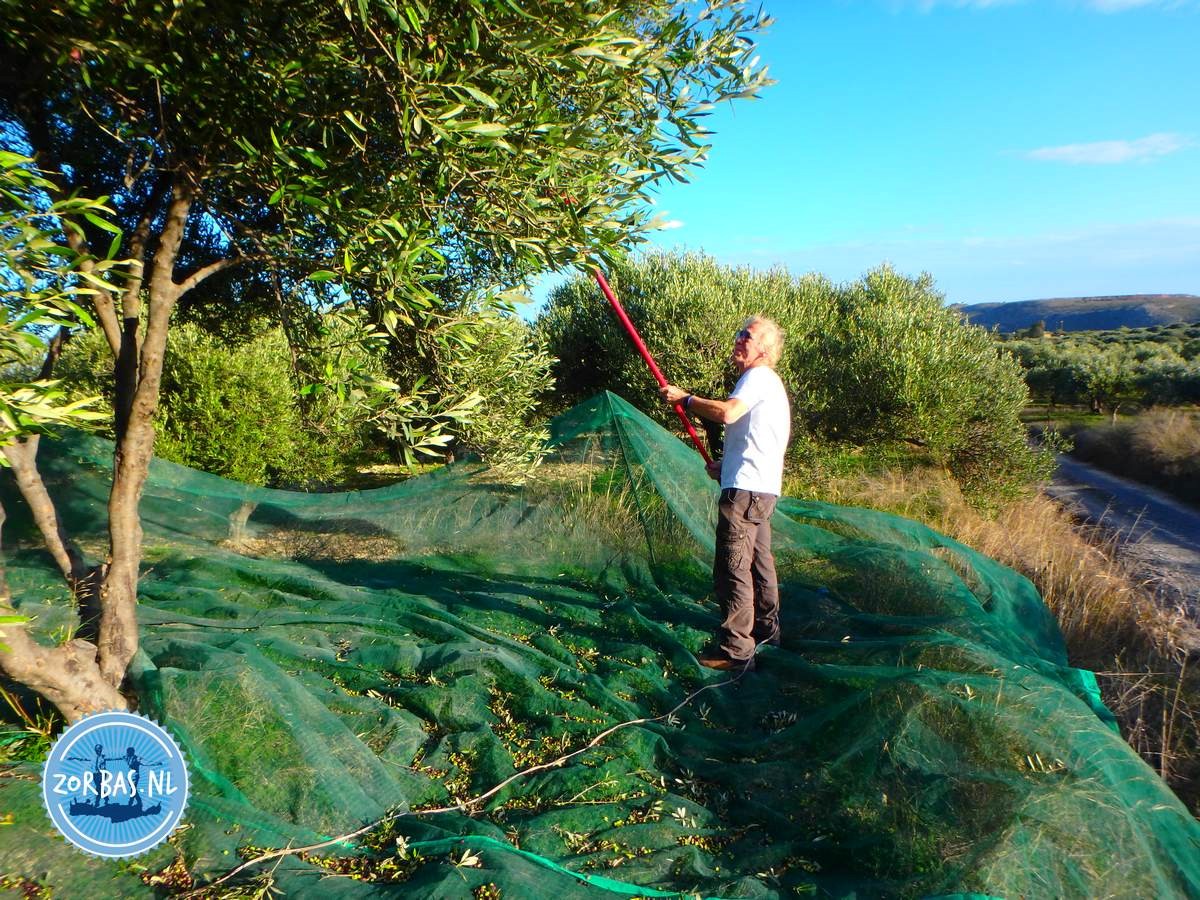 Zoals ieder jaar was het in november tijd voor de olijvenoogst op Kreta. Onder een helderblauwe lucht en met zomerse temperaturen begonnen we op ons olijfveld met de oogst van olijven. In eerste instantie brengen we alle benodigde apparatuur zoals de oogststokken, generator, olijfnetten naar het olijfveld.